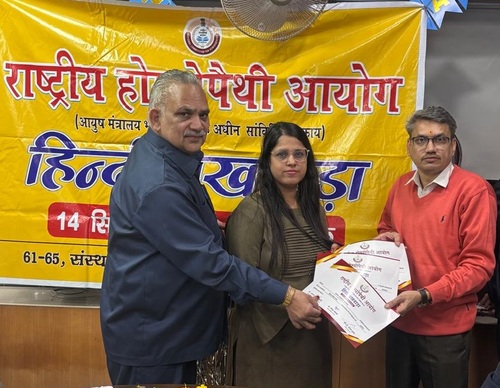 Hindi Fortnight has organized in the National Homoeopathy Commission under the auspices of the Ministry of AYUSH from 14 September 2024 to 29 September 2024 with the aim of increasing awareness of Hindi and accelerating its use in government work. On the occasion of Hindi Diwas on 14th September, all the officers and official women employees working in the Commission, in the presence of autonomous Boards under NCH, Homeopathy Medical Assessment and Rating Board, Homeopathy Ethics and Registration Board, Homeopathy Education Board and Secretary NCH, took oath for maximum use of Hindi in government work.